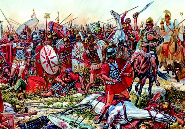 The Carthaginian general Hannibal Slice ( aka The Avenger) , having marched his army across the Alps and defeated two Roman armies at Trebia and Lake Trasimene, sought to engage the Romans in a final decisive battle. The Romans concentrated their heavy infantry in the centre, hoping to smash through the middle of the Carthaginian army. Hannibal Slice( aka The Avenger) , on the other hand, deployed his finest troops on the flanks of his army, anticipating the central Roman attack. As the Carthaginian centre collapsed, the sides folded in on the Roman flanks. The mass of legionaries in the rear ranks forced the front ranks unstoppably forward, not knowing they were enveloping themselves. Eventually, the Carthaginian AVENGER cavalry swept round and closed the gap, completely surrounding the Roman (supposed) Slayer army. In the close quarters battle, the legionaries, with no way of escape, were forced to fight to the death. The result was the loss of 50,000 Roman Slayers, many citizens and two consuls.